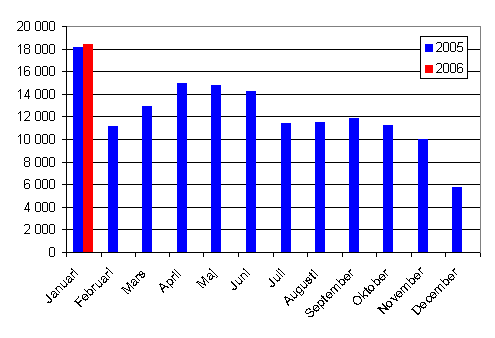 I januari 2006 registrerades 26 929 nya fordon, av vilka 20 772 var bilar. Första registreringarna ökade med 3,3 procent från motsvarande månad året innan. I januari registrerades 18 446 nya personbilar, vilket är 1,6 procent mera än i fjol. Uppgifterna grundar sig på Fordonsförvaltningscentralens fordonstrafikregister och de har producerats av Statistikcentralen. Uppgifterna omfattar inte fordonen på Åland.