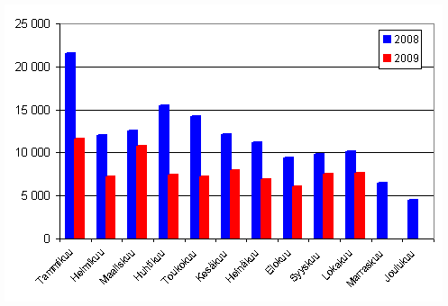 Lähde: Ensirekisteröintitilastot 2009. Tilastokeskus, AKE