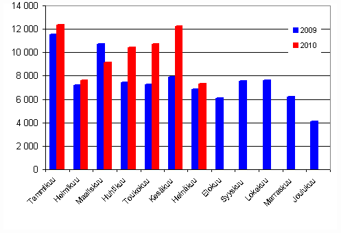Lähde: Ensirekisteröintitilastot 2010. Tilastokeskus, TraFi
