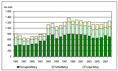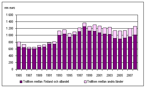 inom utrikessjöfarten 1985-2008, mn euro