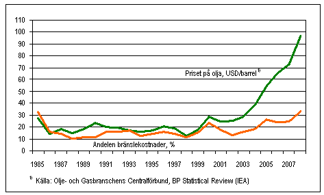 Andelen bränslekostnader av samtliga kostnader