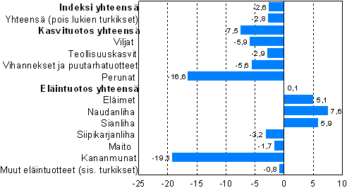 | Eläintuotos | 98,8 | -3,3 | 2,7 |