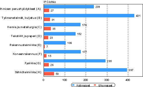Suomessa haetut patentit patenttilohkoittain vuonna 2003