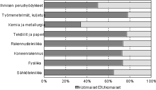 Kotimaisille ja ulkomaisille hakijoille Suomessa myönnetyt patentit vuonna 2005, prosenttia