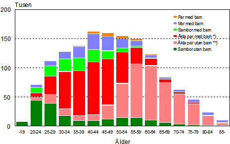 Familjer efter typ och hustruns/moderns ålder år 2007
