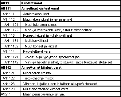 Taulukko 2. Kiinteiden varojen tavaratyyppiluokitus.