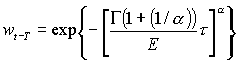 jossa τ = t-T+0.5, E on keskimδ äräinen elinikä ja α on muotoparametri, jonka arvo on 8.