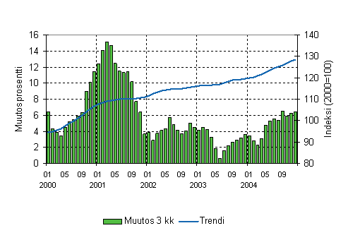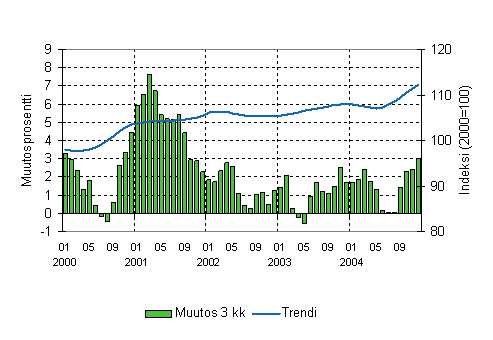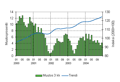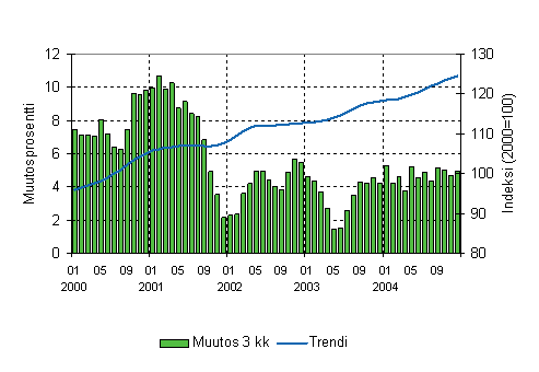 Lähde: Liiketoiminnan kuukausikuvaajat 2004, joulukuu. Tilastokeskus