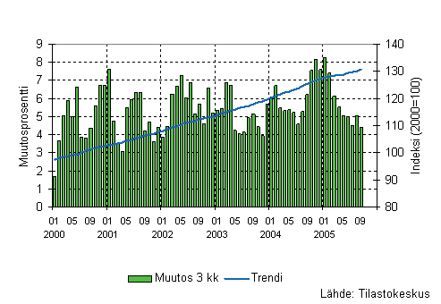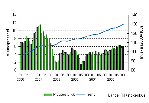 Palvelualojen liikevaihto oli Tilastokeskuksen mukaan vuoden 2005 kolmannella neljänneksellä 6,2 prosenttia suurempi kuin vastaavana ajanjaksona vuotta aiemmin. Kuluvan vuoden toisella neljänneksellä liikevaihdon lisäys oli 6,4 prosenttia. Palvelualoissa ei ole mukana kaupan toimialoja ja liikevaihto on työpäiväkorjattu poistamalla kalenterista aiheutuvat vaihtelut.