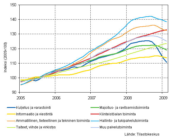 Liikevaihdon trendit toimialoittain 2/2009 (TOL 2008)