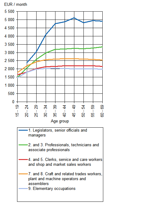 The increase in earnings related to age and work experience is, in general, the more marked the more education the tasks require. For example, the earnings of legislators, senior officials and managers increase until they turn 50 and those of professional, technicians and associate professionals increase until they reach retirement age, whereas the earnings of persons engaged in tasks that require a shorter education remain roughly unchanged after the age of 35.