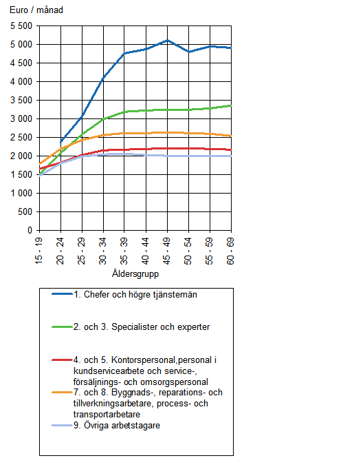 Den ökning av lönenivån som har anknytning till ålder och arbetserfarenhet är i allmänhet större ju mer utbildning uppgifterna kräver. Till exempel chefernas och de högre tjänstemännens löner ökar fram till 50 års ålder och specialisternas samt experternas ända fram till pensionsåldern, medan löntagare med uppgifter som kräver kortare utbildning har medellöner som i stort sett är oförändrade efter 35 års ålder.