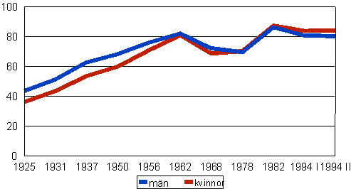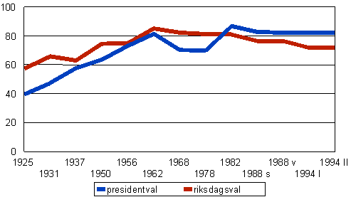 Valdeltagandet - kvinnor och män i elektorsvalen åren 1925-1982 och i presidentvalet år 1994