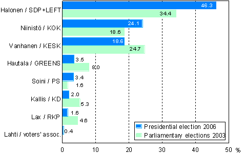 Source: Election Statistics, Presidential election 2006. Statistics Finland
