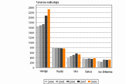 Lähde: Rajahaastattelututkimus. Ulkomaiset matkailijat Suomessa vuonna 2008. Matkailun edistämiskeskus / Tilastokeskus