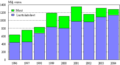 Kuvio 1. Rahoitusleasinginvestoinnit vuosina 1996-2004