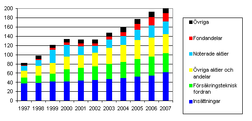 Hushållens finansiella förmögenhet 1997-2007, miljarder euro