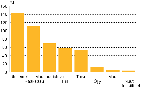 Kuvio 6. Polttoaineiden käyttö sähkön ja lämmön yhteistuotannossa 2004