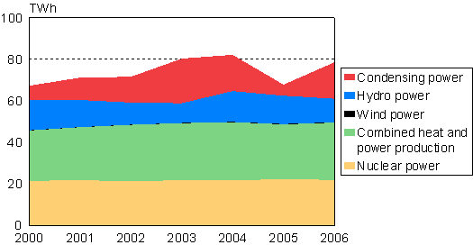 Figure 03. Electricity production by production mode 2000-2006