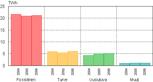 Kuvio 09. Kaukolämmön tuotanto polttoaineilla 2004-2006