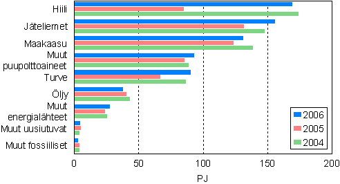 Polttoaineiden käyttö sähkön ja lämmön tuotannossa kasvoi 26 prosenttia vuonna 2006 ja hiilen käyttö lähes kaksinkertaistui. Turpeen käyttö kasvoi 35 prosenttia ja metsäteollisuuden jäteliemien 18 prosenttia. Muiden fossiilisten polttoaineiden käyttö väheni 13 prosenttia ja muiden uusiutuvien polttoaineiden 10 prosenttia. Muista polttoaineissa suurin erä ovat kierrätyspolttoaineet. Kierrätyspolttoaineiden käyttö vähentyi, kun jätteenpolttodirektiivin mukaan vanhoilta laitoksilta alettiin vuoden 2006 alusta alkaen edellyttää mm. päästöjen jatkuvaa seurantaa.