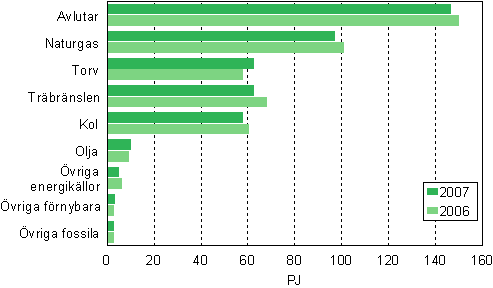 Figur 14. Bränsleförbrukning inom samproduktion av el och värme 2006-2007