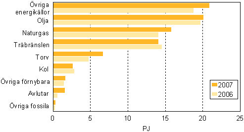 Figur 15. Bränsleförbrukning inom separat värmeproduktion 2006-2007