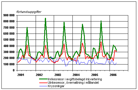 Finländarnas fritidsresor per månad 2001-2006, förhandsuppgifter