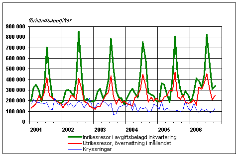 Finländarnas fritidsresor per månad 2001-2006, förhandsuppgifter