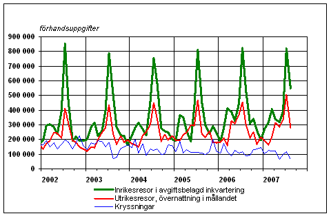 Finländarnas fritidsresor per månad 2002-2007, förhandsuppgifter