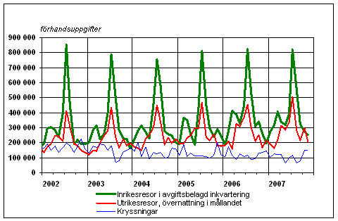 Finländarnas fritidsresor per månad 2002-2007, förhandsuppgifter