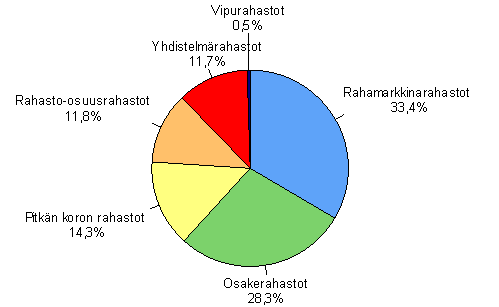 Rahamarkkinarahastot olivat arvoltaan suurin sijoitusrahastotyyppi vuoden 2005 toisen neljänneksen lopussa. Rahamarkkinarahastojen arvo oli 13,4 miljardia euroa eli kolmannes kaikkien rahastojen arvosta. Osakerahastojen arvo oli 11,4 miljardia euroa eli 28 prosenttia rahastojen arvosta. Sijoitusrahastojen yhteenlaskettu arvo oli vuoden 2005 toisen neljänneksen lopussa 40,3 miljardia euroa. Tiedot käyvät ilmi Tilastokeskuksen sijoitusrahastotilastosta.