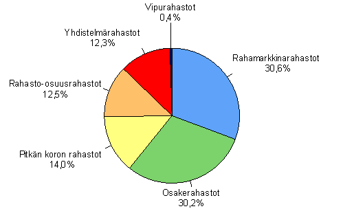 - Rahastojen arvo rahastotyypeittäin 30.9.2005, %, yht. 43,8 mrd. euroa (16.12.2005)