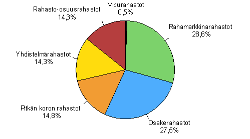 Rahastojen arvo rahastotyypeittäin 30.9.2006, %, yht. 55,4 mrd. euroa