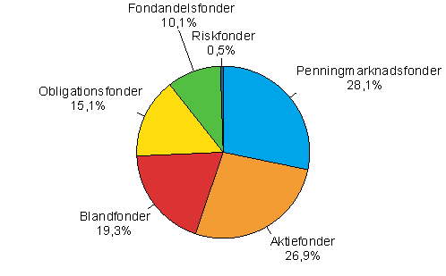 Penningmarknadsfonderna gick förbi aktiefonderna och var den största fondtypen under det första kvartalet år 2007. Värdet av penningmarknadsfonderna var 18,3 miljarder euro i början av året. Värdet av aktiefonderna var 17,5 miljarder euro. Värdet av placeringsfonder registrerade i Finland var totalt 65 miljarder euro i början av år 2007, dvs. 26 procent större än året innan och 6 procent större än i slutet av föregående kvartal. Uppgifterna framgår av Statistikcentralens kvartalsstatistik över placeringsfonder.
