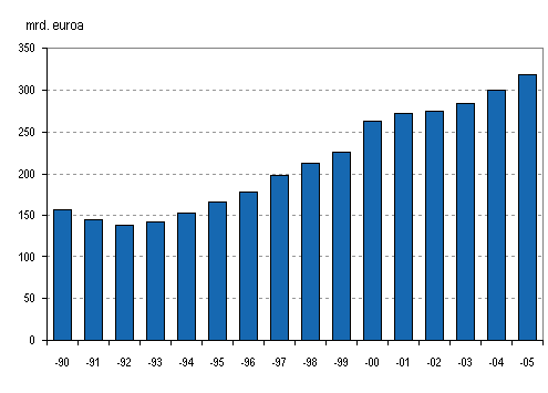 Yritysten liikevaihto käypiin hintoihin 1990-2005