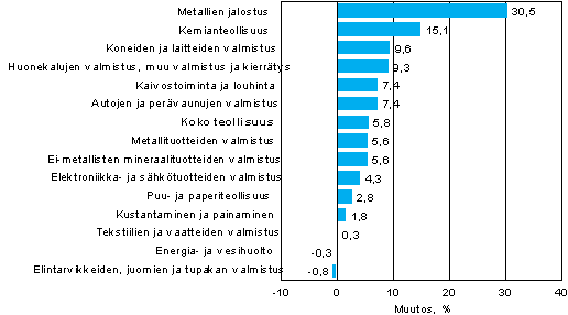 | - Elektroniikka- ja sähkötuotteiden valmistus | -6,4 | 4,6 | 2,9 | 14,9 |