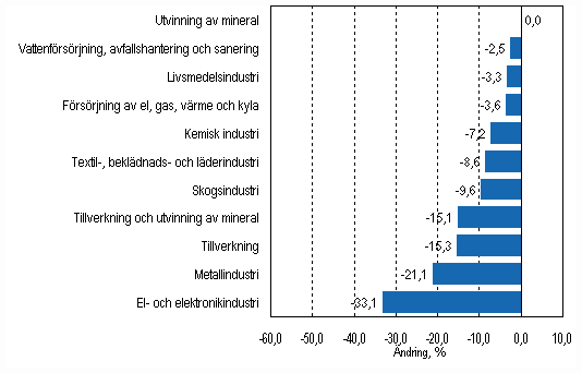 minskningen inom el- och elektronikindustrin (-33,1 %) samt inom