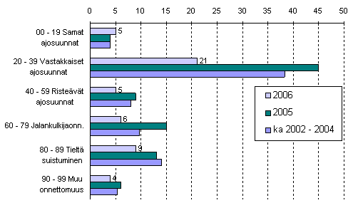 Tieliikenteessä kuolleet onnettomuustyypin mukaan tammi-maaliskuussa 2006