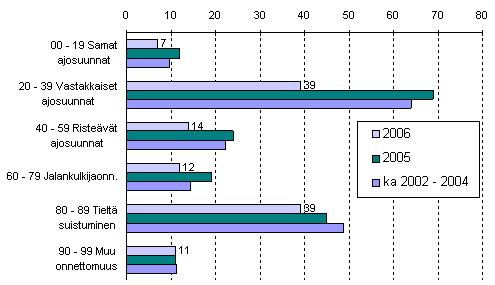 Tieliikenteessä kuolleet onnettomuustyypin mukaan tammi-kesäkuussa 2006