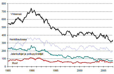 Tieliikenteessä kuolleet 1/1985 - 1/2007