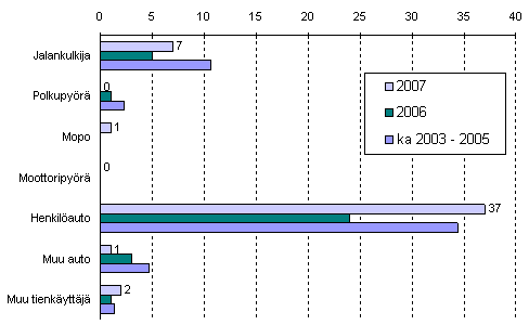 Tieliikenteessä kuolleet tienkäyttäjäryhmän mukaan tammi-helmikuussa 2007