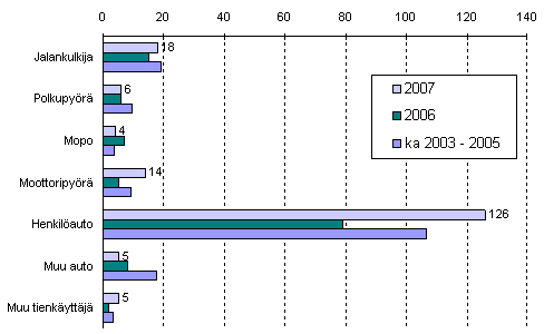 Tieliikenteessä kuolleet tienkäyttäjäryhmän mukaan tammi-kesäkuussa 2007