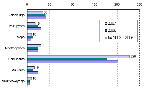 Tieliikenteessä kuolleet tienkäyttäjäryhmän mukaan tammi-marraskuussa 2007