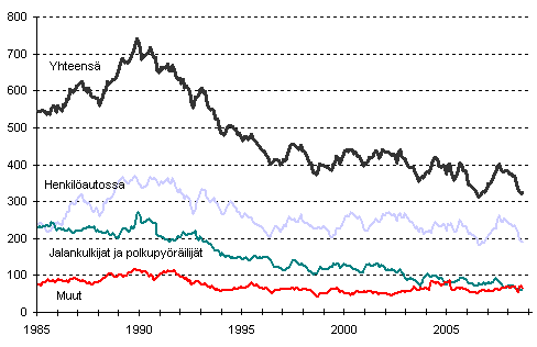 Tieliikenteessä kuolleet 1/1985 - 9/2008