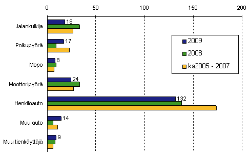 Tieliikenteessä kuolleet tienkäyttäjäryhmän mukaan tammi-syyskuussa 2009