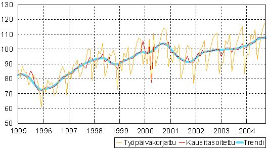 teollisuustuotannon volyymi-indeksi 1995 -2004 lokakuu,
