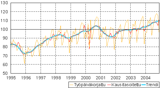 teollisuustuotannon volyymi-indeksi 1995 -2004 joulukuu,