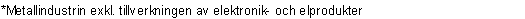 Mätt med förädlingsvärdet har elektronikindustrin blivit den viktigaste näringsgrenen inom Finlands industri. År 2003 var dess förädlingsvärdeandel 24 procent. Trenden för elektronikindustrin var fortsatt stigande. Inom den övriga metallindustrin, vars andel var 24 procent mätt med förädlingsvärdet, har produktionen fortsatt anspråkslöst jämnt.