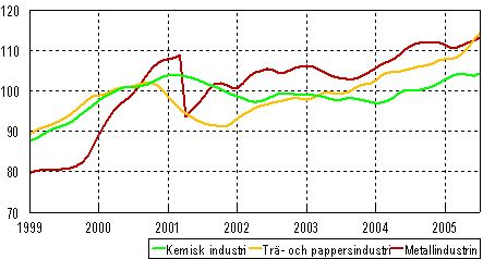 Trenden för industriproduktionen 1999-2005,